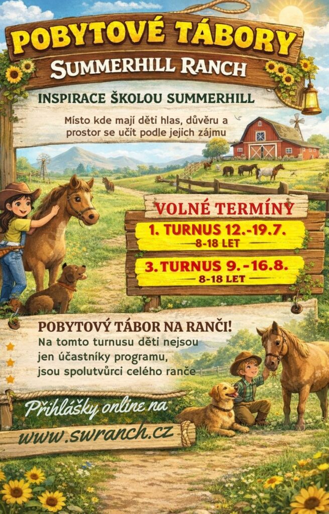Místo, kde děti skutečně rozhodují…. Tábor svobody, zodpovědnosti a skutečného života na ranči. Toto téma je inspirované myšlenkou Summerhill školy – tedy místem, kde mají děti hlas, důvěru a prostor učit se podle jejich zájmu. Na tomto turnusu nejsou děti jen ,,účastníky programu´´ jsou spolutvůrci celého ranče.